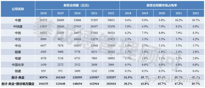 四、建筑业的短期趋势关于建筑业短期的发展趋势,我觉得是三个:▌1. 市场的政策化趋势非常明显市场正常应该是由需求决定的,需求的背后应该是经济自然发展规律,钱往回报率高的地方跑。但是现在很多时候政策对市场的影响非常大,导致大家都去追逐政策热点。如果不是深刻理解这些政策,十有八九要掉坑里。比如有人说,今天不投新能源,就像几年以前不投房地产一样,可能这是一个大的趋势,但是只听这么一句话,就跟着投进去,可能就掉坑里面了,要深入去研究能不能为我所用。▌2. 资金在经营中间的权重越来越大你有钱能拿到活,没钱拿不到活;你的钱成本低,可以拿到活,你成本高,可能就活不下去了。这是把双刃剑,如果我们每一个企业都靠自己到银行去拿钱接项目的话,估计这个公司也转不下去。▌3. 体制在信用中间的权重越来越大政府及平台公司投资的项目,普遍倾向于发包给央企国企,且趋势越来越明显,短期不会改变。某地级市有一家企业,几年以前国企控股反向混改后,去年的新签合同大概达到400多个亿,几乎翻倍。同时银行给的信用额度和银行的利息大幅度的下降,建筑业如此,房地产行业如此。